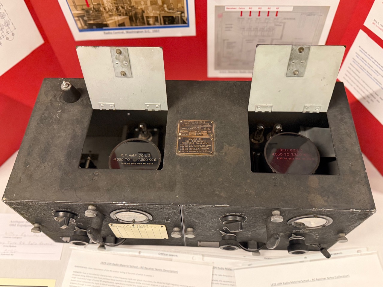 1925 - RMC Gilmour holds 1905 NAA receiver - on table is SE-1420-C receiver and other as yet unidentified equipment (Photo by United) ![]() |