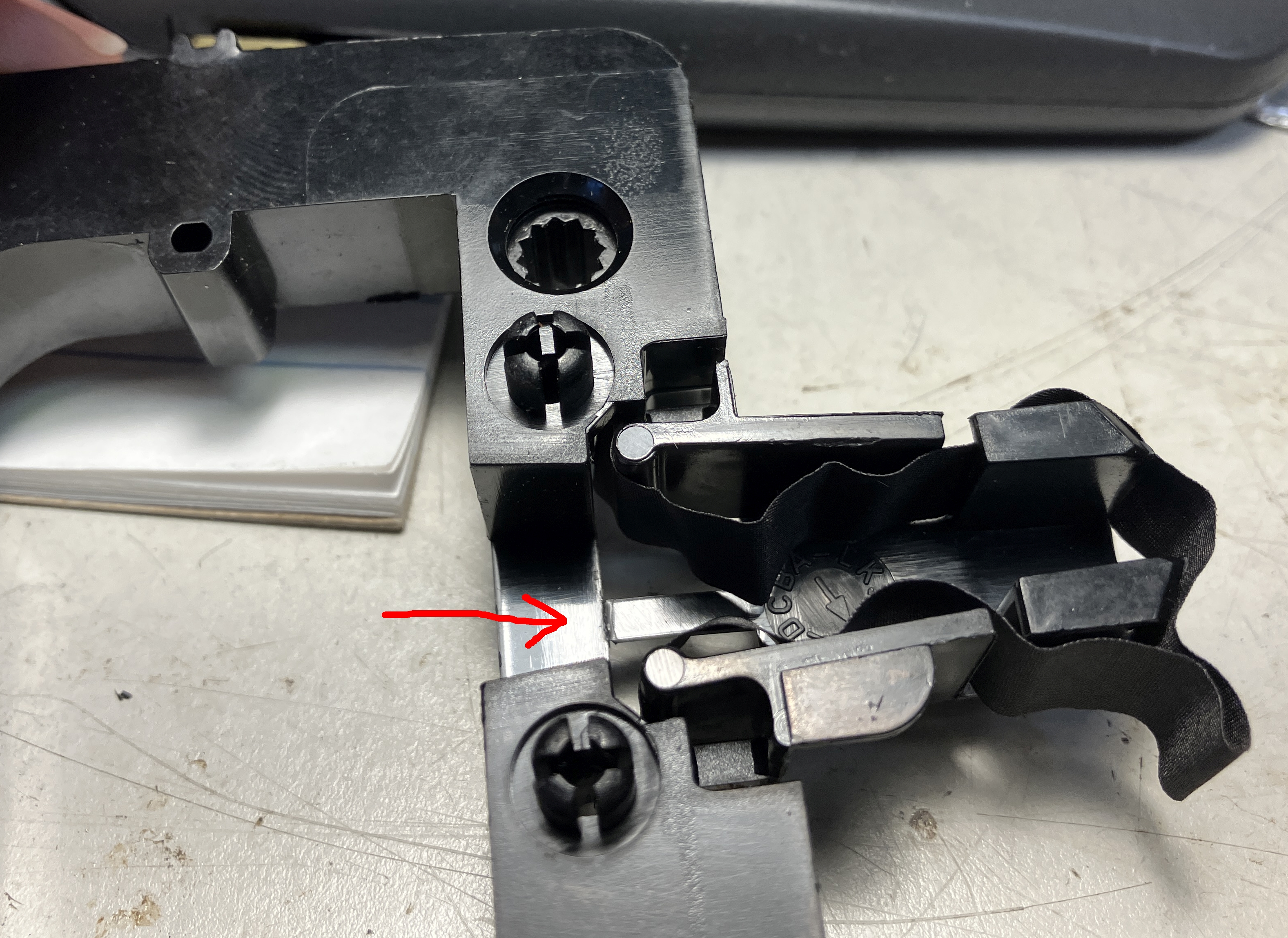 After the new ribbon is installed Flip the cartridge over and apply a bit of glue to reattach the support bar. ![]() |